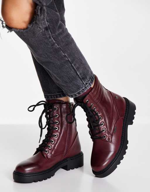 XTI - Bordeauxrøde ankelstøvler med snørebånd
