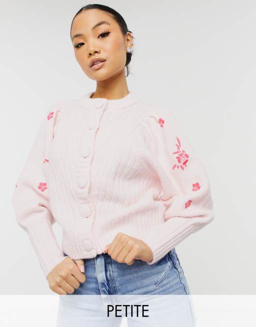 Y.A.S Petite - Lyserød cardigan med broderede ærmer - Kun hos ASOS