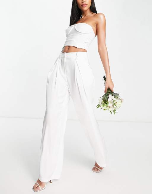 Y.A.S - Alt til bruden - Hvide bukser med vidde i satin - Del af sæt