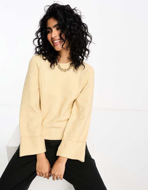 Y.A.S - Beige trøje med vide ærmer og opsmøgne ærmekanter