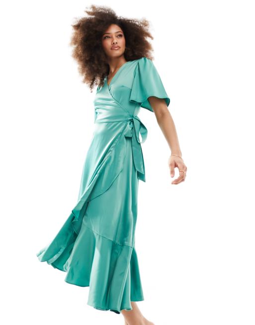 Y.A.S - Brudepiger - Grøn slå-om-midikjole i satin
