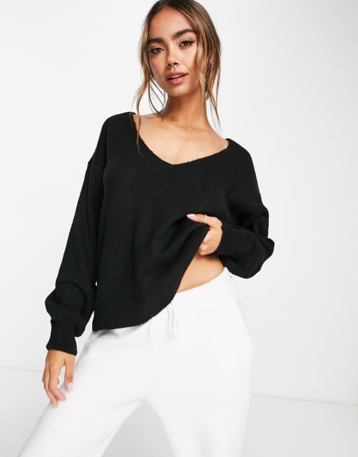 Y.A.S. - Emmy - Striktrøje med dyb V-hals i sort
