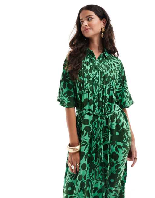 YAS - Grøn T-shirt-midikjole med bælte og blomstermønster