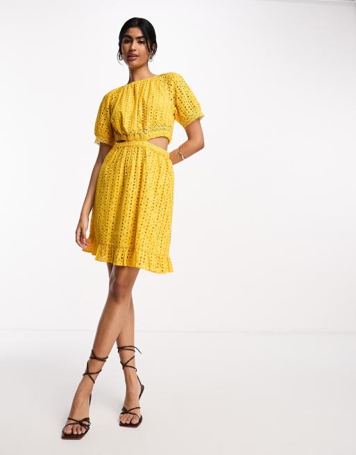 Y.A.S - Gul minikjole med udskæringer i siderne i broderie anglaise