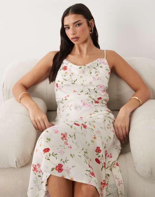 YAS - Hvid cami-midikjole med blomstermønster i satin