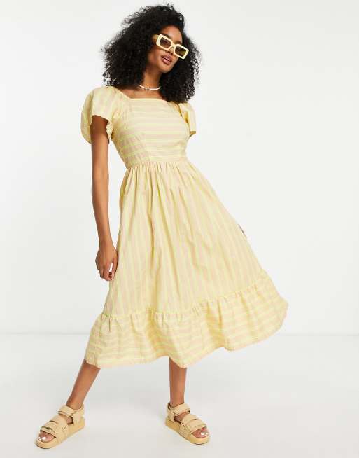 Y.A.S - Maxikjole med biege bomuldspoplin med striber