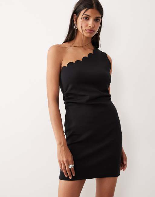 YAS - Sort minikjole med oneshoulder-snit og bølgekant