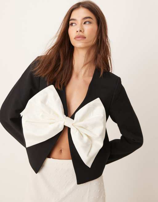 yas - Sort oversized cropped jakke med sløjfedetalje