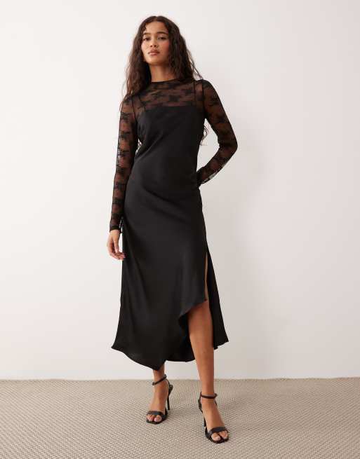 YAS - Sort slip-kjole med høj hals, blondetop og hybrid-design