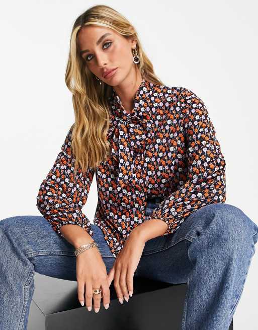 Y.A.S. - Vella - Flerfarvet bluse med sløjfe og print
