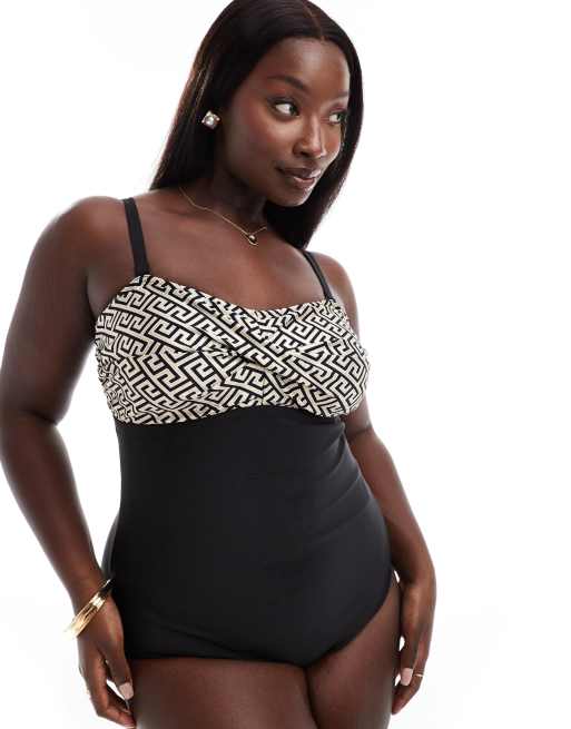 Yours - Bandeau-badedragt med geometrisk print i sort