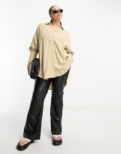 Yours - Beige oversized skjorte med hørlook
