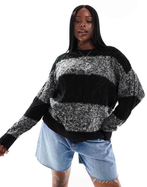 Yours - Grå og sort trøje i kabelstrik