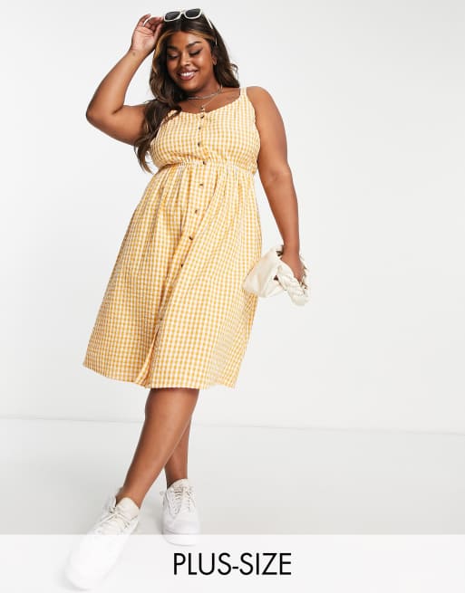 Yours - Gul midikjole med stropper og knapper i gingham-tern