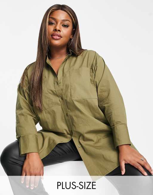 Yours - Kakifarvet, oversized skjorte