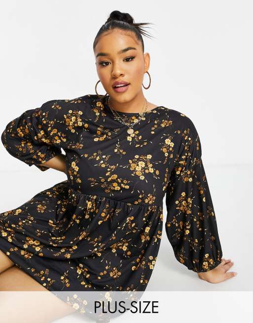 Yours - Kjole med ballondetalje i sennepsgult blomstermønster