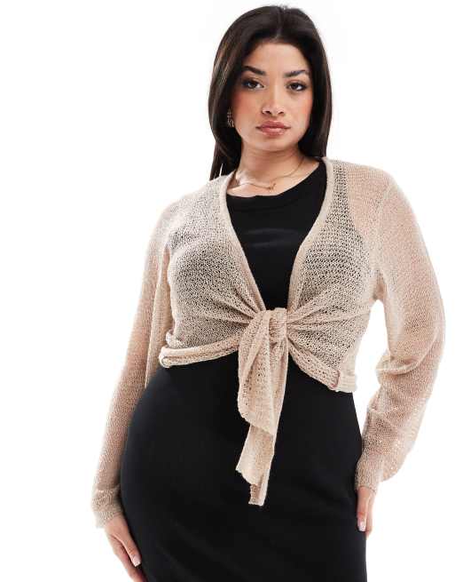 Yours - Let, strikket og beige cardigan med bindebånd fortil