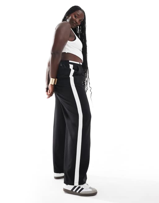 Yours - Sorte bukser med brede ben, kontrastfarvet linning og sidestriber