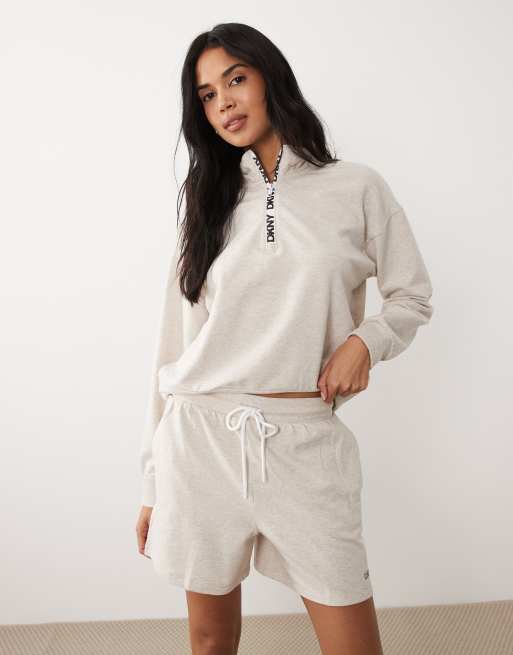 DKNY Dkny long sleeve top and boxer set in quill heather