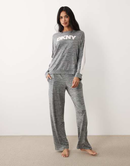 DKNY Dkny long sleeve top and pant lounge set in iron gate cationic in iron gate caionic