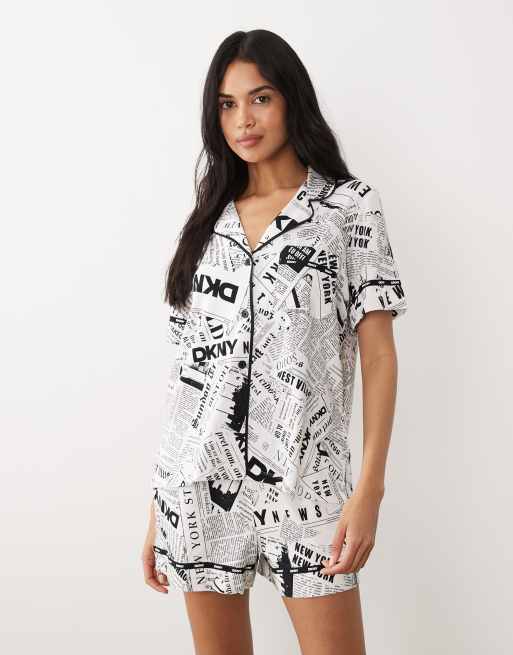 DKNY Dkny short sleeve notch collar and boxer in white newspaper in white newspaper