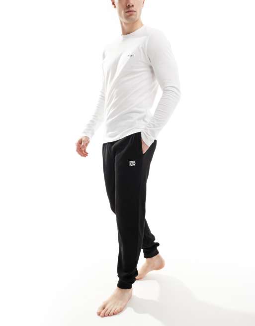 DKNY Hawks waffle lounge pants in black