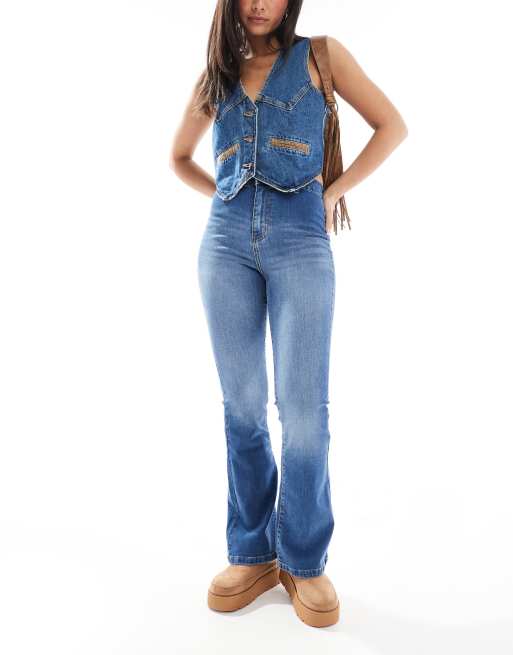 DTT Bianca high waist flared jeans in mid blue wash
