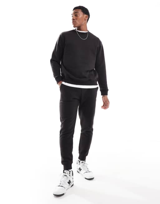 DTT crew neck sweatshirt & jogger tracksuit set in black