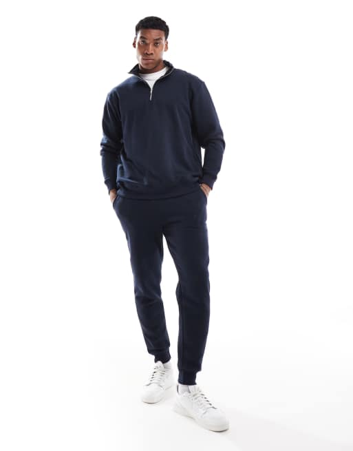 DTT half zip sweatshirt & jogger tracksuit set in navy