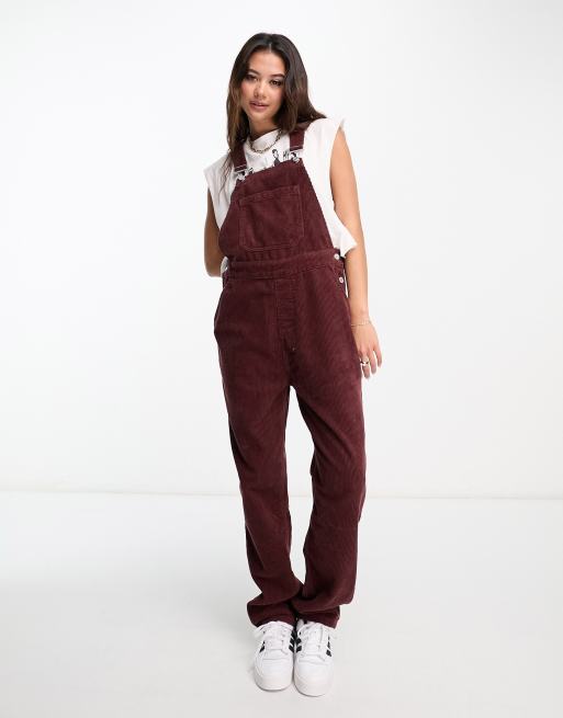DTT Ivy cord wide leg dungarees with pockets in chocolate brown