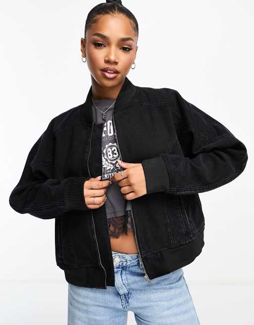DTT Jaz denim bomber jacket in black