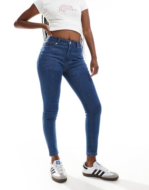 DTT Jo mid rise skinny jeans in mid blue wash