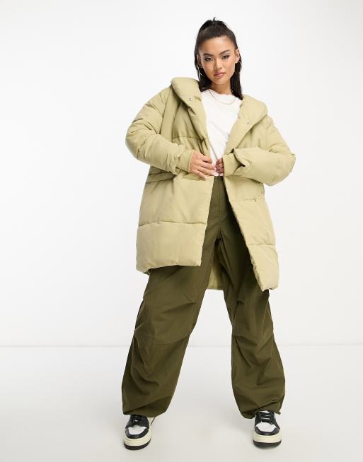 DTT Lindzi longline double breasted puffer jacket in sage green