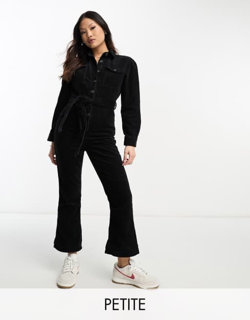 DTT Petite flora cord wide leg belted jumpsuit in black