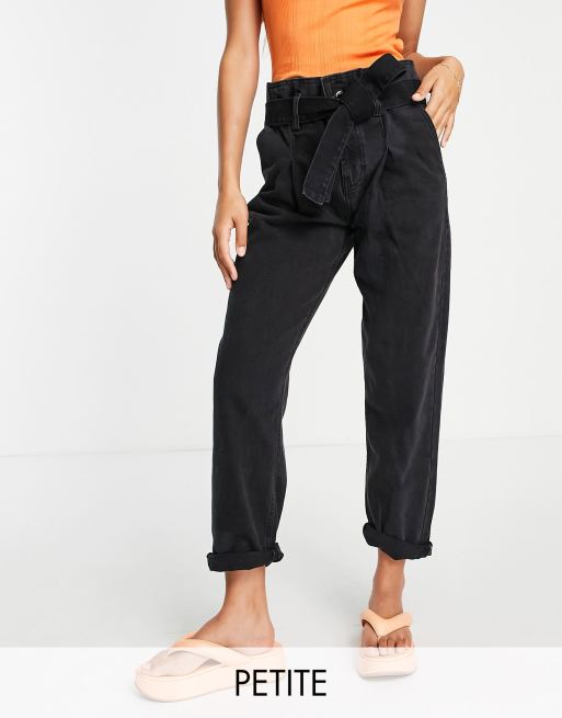 DTT Petite Sultan paper bag waist jeans in washed black