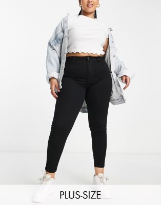 DTT Plus Jo mid rise skinny jeans in black