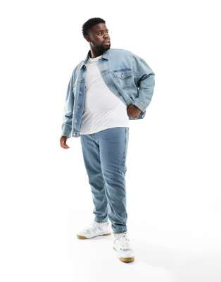 DTT Plus rigid cropped tapered fit jeans in mid blue