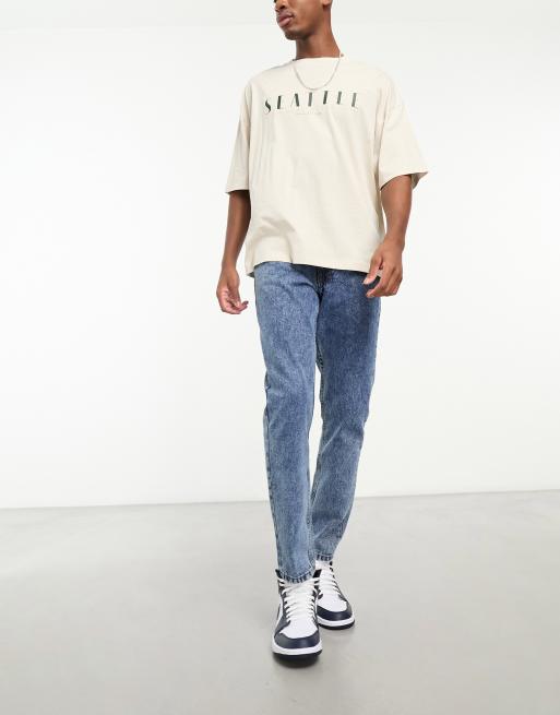 DTT rigid slim fit jeans in light blue acid wash