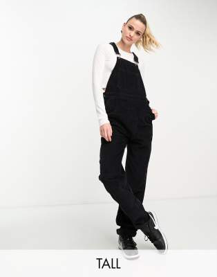 DTT Tall Ivy cord wide leg dungarees with pockets in black