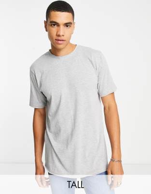 DTT Tall raw edge t-shirt in light grey marl