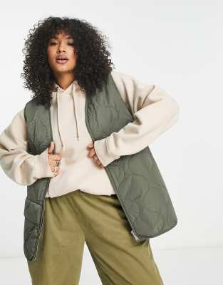 Dr Denim Plus Otila quilted gilet in khaki