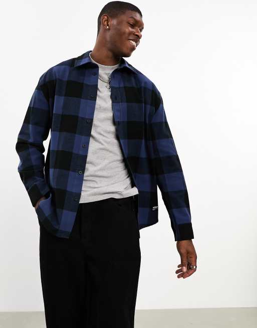 Dr Denim Frank relaxed fit long sleeve flannel shirt in blue indigo check