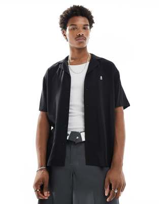 Dr Denim Madi short sleeve relaxed fit resort collar shirt in black