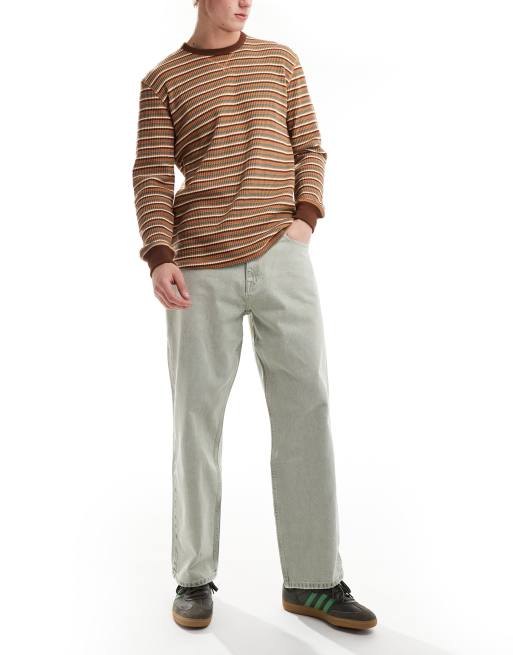 Dr Denim Omar wide straight leg jeans in washed bean tint green wash