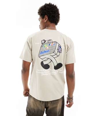 Dr Denim Trooper American 90's cut relaxed fit t-shirt with 'world traveller' graphic back print in pale taupe