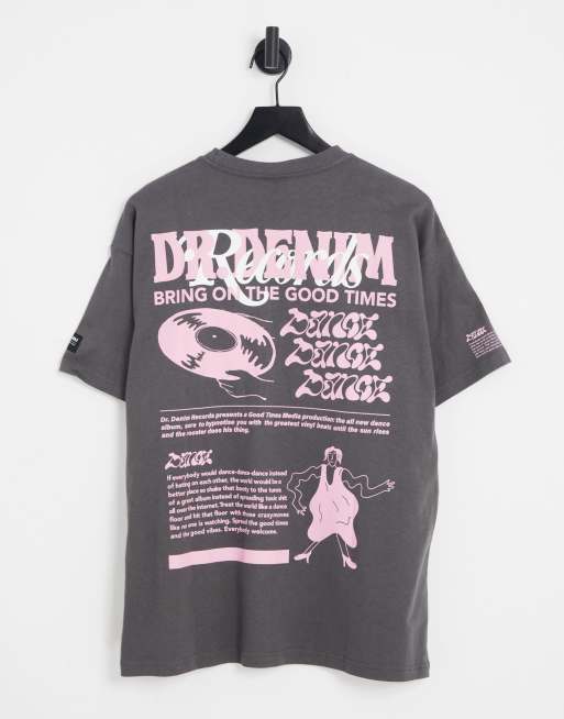 Dr Denim trooper t-shirt with back print in washed black