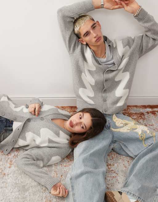 Dr Denim unisex Tom relaxed fit knit wool blend cardigan in grey melange wave