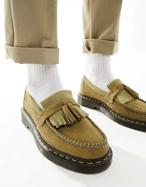 Dr Martens Adrian tassel loafers in khaki nubuck