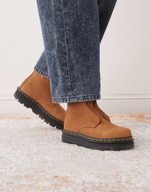 Dr Martens ZebZag laceless boot in desert brown milled nubuck