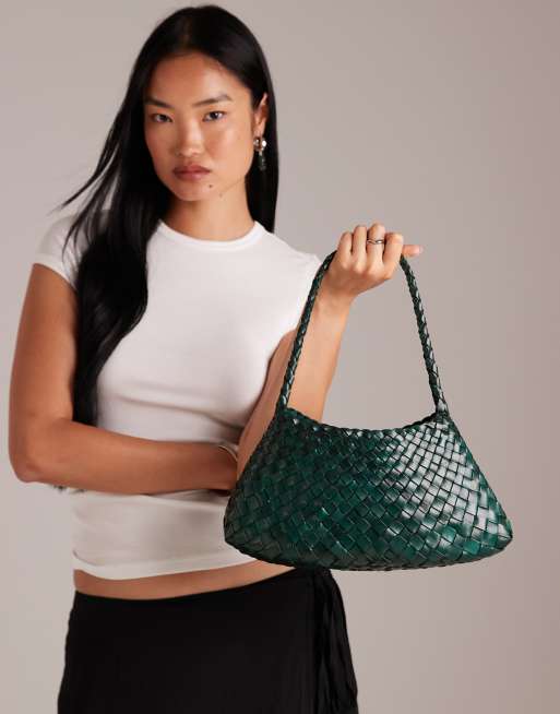 Dragon Diffusion Rosanna woven leather shoulder bag in forest green
